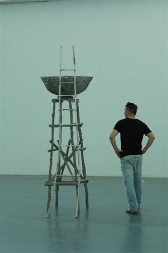 在本次展览中,克莱门特还带来了他在印度创作的四件雕塑/装置作品。其中《Self-portraitWith Five Senses》是以自我为形象的雕塑。而在水彩的创作上,他常在手工纸上创作没有任何雷同的水彩画,他以透明的水彩涂层或晕染作为意象的背景,进而完善其主题。克莱门特衷于游牧,他把游牧生活融入艺术创作,正如他在北京新近创作的水墨画系列,赤裸裸的自画像无处不在的跃然纸上,脑袋被漫画式地画成奇形怪状:秃顶,一双大眼目不转睛,或对视,或像双胞胎式的分离,或独自一人,或像佛教千手观音的形式,等等。