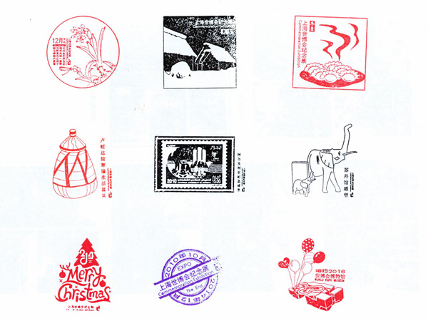 12月份推出的3枚展品章为卢旺达馆草编生活器具章、苏丹馆雕塑章和阿尔及利亚纪念邮票章;2枚节气章是大雪章和冬至章;2枚辞“展”迎“馆”章是上海世博会纪念展章和相约2016世博会博物馆章。上海世博会纪念展章通过醒目的数字记录了它的办展时间,具有纪念意义。世博会博物馆章的图案除了新馆建筑外形图外,还通过飘扬的气球,简练的文字及大红色块相组合,来表达对未来世博馆的期盼。
