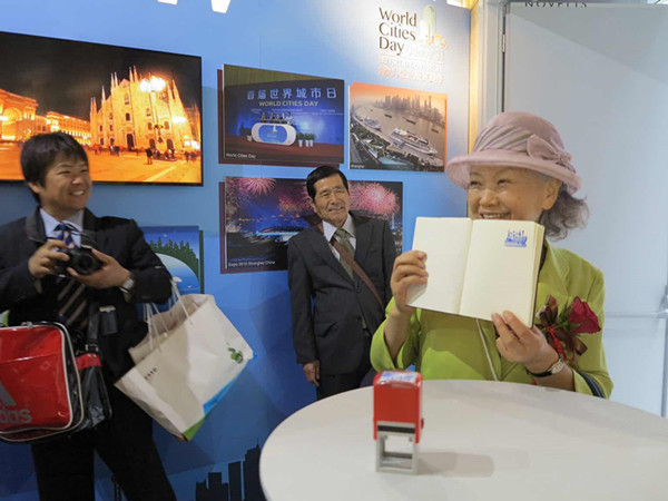世博大名人“世博奶奶”山田外美代连续两天都来世博馆参观。奶奶看到工作人员就像见到老朋友一样,和大家亲切的合影,还盖了章。