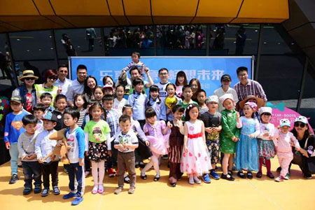 世博馆团员与党总支书记蒋莎(右四)一起参加团日表彰分享活动