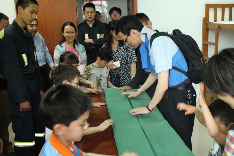 活动期间,家长与孩子们积极参与游戏互动,玩得不亦乐乎。在消防演习活动中,孩子们通过观看卡通版的消防宣传片、参观卢湾消防中队宿舍、整理被子、探访消防车秘密、穿衣比赛等一系列活动,了解了消防知识和一些实用本领,在寓教于乐中提前过了一个有意义的儿童节。