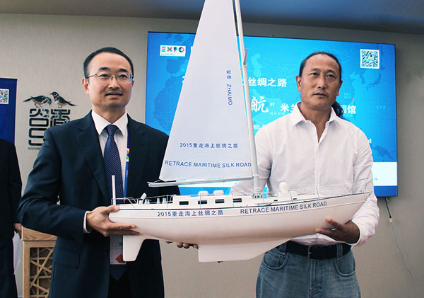 米兰当地时间8月18日,“2015重走海上丝绸之路”归航主题日活动在米兰世博会中国馆隆重开幕。中国著名航海家翟墨船长代表活动组委会将领航船模捐赠给世博会博物馆永久收藏。
