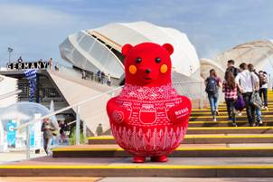 米兰时间10月17日,俄罗斯馆吉祥物Mishka来到了世博会博物馆展示馆!