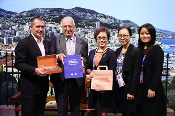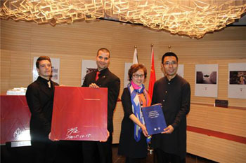 世博会博物馆展馆总代表刘绣华向俄罗斯馆馆长Sergey Bondarenko颁发捐赠证书
