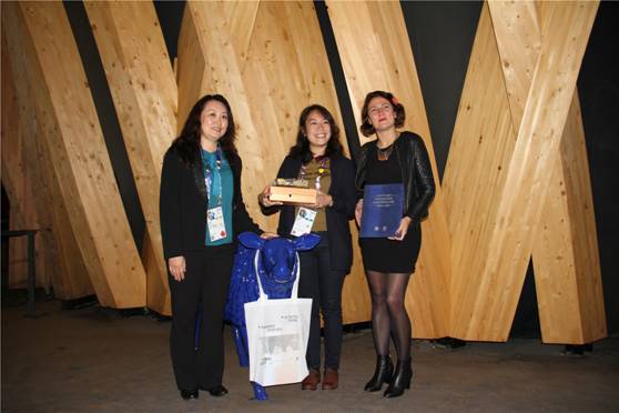 世博会博物馆展馆总代表刘绣华(左一)向法国馆颁发捐赠证书 2015年米兰世博会法国馆