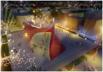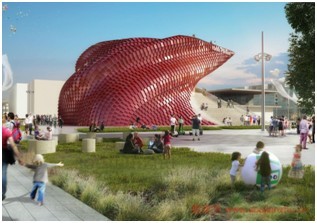 该项目是由Daniel Libeskind设计的,这是万科首个为2015年米兰世博会有史以来海外展馆。外层有着自动清洁、空气净化的金属瓷砖,是由Libeskind与意大利公司Casalgrande Padan合作设计的,“红色的蛇状”结构重新诠释中国传统的食堂(餐厅)。