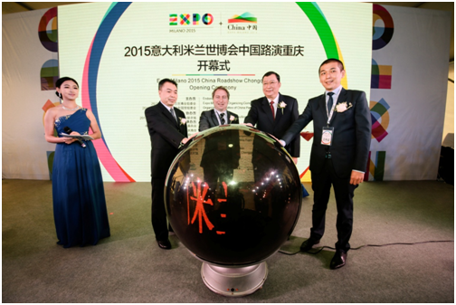 意大利驻重庆总领事马非同、中国贸促会展览部副巡视员梁海光、重庆市贸促会副会长罗莹以及米兰世博会组委会中国区代表周亦嘉等出席开幕式并致辞。马非同表达了与重庆市政府合作,积极参与2015米兰世博会的愿望,同时表示意大利一直致力于简化中国公民赴意旅游的手续,放宽签证政策;希望借米兰世博会重庆日举办之机,加深意大利与重庆的相互了解。周亦嘉向现场观众介绍了2015年意大利米兰世博会整体筹备情况。梁海光致辞并介绍米兰世博会中国馆的筹备情况。罗莹介绍重庆市参与意大利米兰世博会的情况。重庆市人民政府办公厅副主任游贤勇代表重庆市政府出席路演开幕式,与会嘉宾共同启动重庆路演活动并参观活动现场的世博展区。