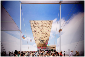 俄罗斯近日发布了2015米兰世博会的展馆设计。设计中参考了俄罗斯最成功的世博会展馆——1851年万国工业博览会展馆——和“绿色技术”的重要性,SPEECH公司设计了一个面积达4000平米的木结构建筑,屋顶轮廓线明显上扬,下方铺装镜面,覆盖展馆主入口,延展达30米。