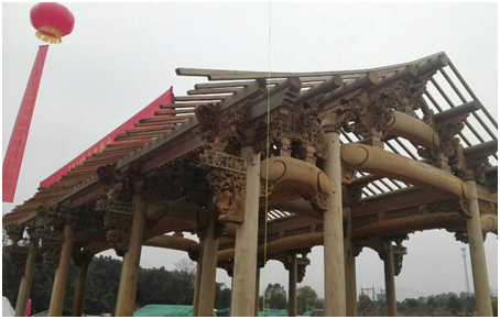 “中国大舞台”主要由屋面、梁柱和美人靠等部件组成,占地面积约150平方米,高近7米,由上海燕恒文化发展有限公司和上海吴永旦建筑文化创意有限公司共同承建制作。大舞台选取直径35厘米以上、长约7米、笔直上好的金丝楠木和泰国柚木为原材料,按照宋代《营造法式》中大木作工艺设计,采用传统榫卯结构、多种雕刻工艺,注重梁柱、斗拱和举折等传统构件和工艺,由上百名东阳工匠历时半年手工制成。形制规整、平衡对称、自然美观。