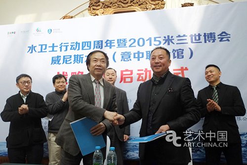 仪式上,水卫士行动与新的合作伙伴——2015米兰世博会威尼斯水馆(意中联合馆)达成战略合作。秦国英副理事长介绍了水卫士行动将在2015年米兰世博会期间以演示水卫士行动所开展的“一桶水洗一辆车”、“为瓶装水做记号”等节水方法宣传节水理念,以图片展、水论坛等活动为载体向世界各国观众宣扬发起于中国的水卫士行动以及母亲水窖公益项目的绿色可持续发展理念,呼吁携手共建地球生态家园。同时结合母亲水窖十五周年活动,组织各界代表深入中国西部干旱地区了解缺水和生态环境状况,并聚合社会慈善资源开展送水行动。