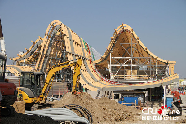 相比于世博园整体建设进度的滞后,当前三个中国馆的建设进度都比较乐观,其中万科馆已经完成整体工程,成为本届米兰世博会中第一个竣工的场馆。中国国家馆和企业联合馆的建设进度也在稳步推进之中。关于中国国家馆建设的进度情况,负责中国馆建筑设计的主持建筑师、清华大学副教授陆轶辰介绍说:“项目时间应该是可以在控制之内的。整个建筑的主结构在两周内可以完工,包括你们现在看到的白色很漂亮的防水层下周应该可以做完,屋面的主板会一直延伸到南边,现在计划是4月10号完成。所以整个建筑在五月前完成是没有问题的。关键是接下来将有很多室内设计、展陈和景观,这些各专业的配合有很多分包,有很多产品会从中国单独运过来,在这里安装,会有很多协调和配合的工作。我们建筑方面每个小的协调端口可能有20多个,每个都需要很多的时间和精力去配合,而且每个的情况都不一样,大家工作的习惯也不一样,时间观念也不一样,这其实比我们解决纯技术问题来说是更难的一个问题。可以想象到下个月将是一个热火朝天的施工现场。”