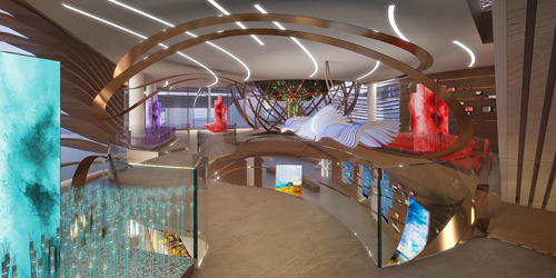 该展馆的设计部分由一系列基本建筑模式组成,在其建筑内部,光线和透明感作为核心元素创造出一种独特的氛围。