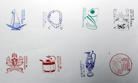 解放网消息 记者今天从上海世博会博物馆获悉,馆方将在4月推出8枚印章,包括7枚展品章和1枚牡丹月章。7枚展品章分别为:新西兰馆毛利图腾柱章、尼加拉瓜馆陶瓷工艺品章、孟加拉馆木船模型章、图瓦卢馆贝壳饰品章、澳门馆玉兔宫灯章、山东馆展品风筝章和宁夏馆鎏金银壶章。