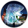 Interactive touring flow lines: tourists may enter the courtyard in the Museum via the major steps at the entrance of the east plaza, feeling the historical memories of Expos from changes of the outside shape and building materials of the exhibition hall while stepping up floor by floor and finally arriving at the sightseeing deck on the top floor.
