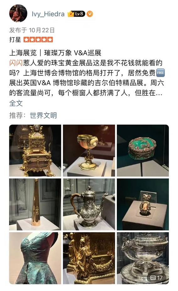 我们看了从《璀璨万象--英国V&A博物馆珍藏吉尔伯特精品展》开幕至今大家给我们的留言,一条条真挚的评论让我们深受感动,一个展览,能够让大家心中泛起一些涟漪,多出一份思考,再多的辛苦付出都非常值得。