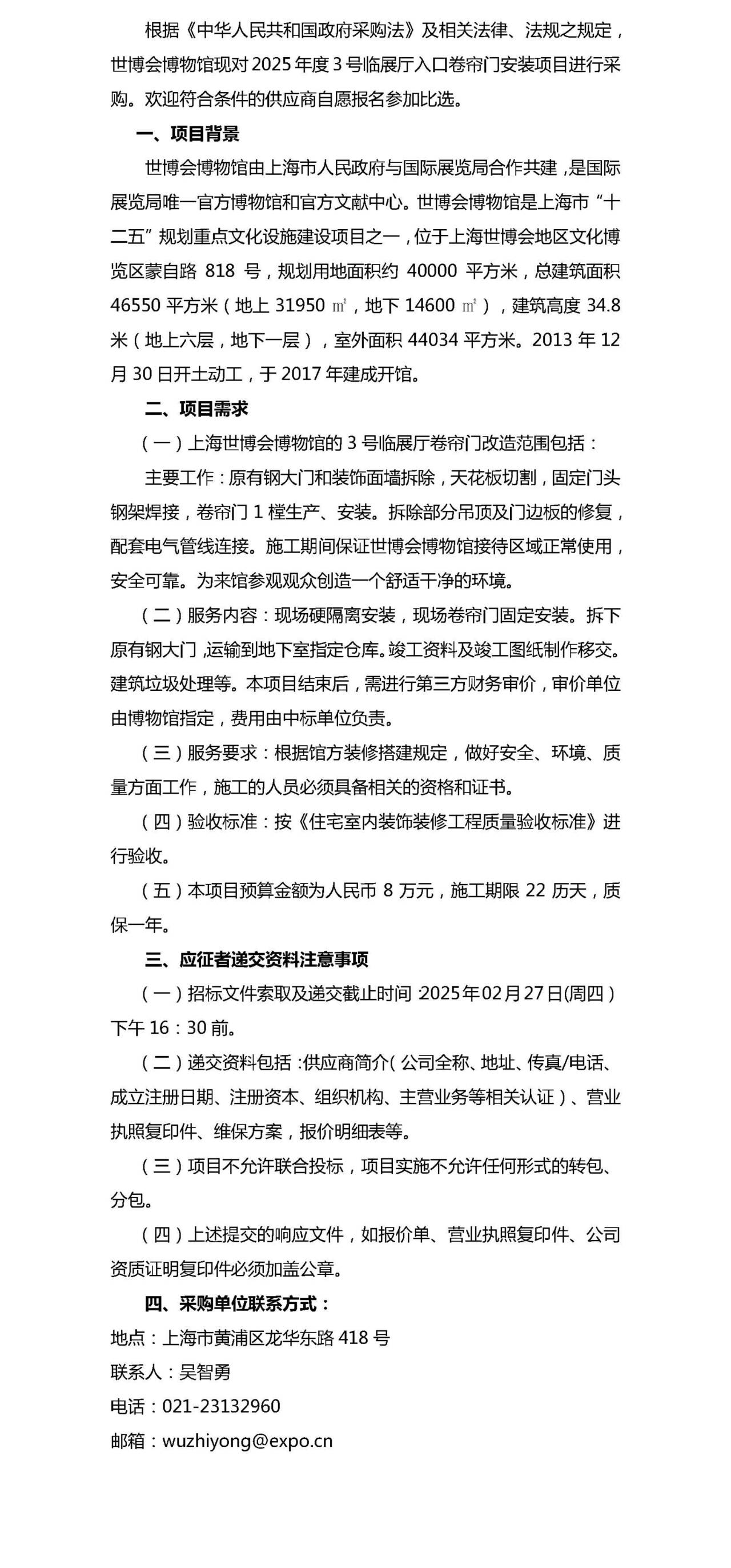 2025年度3号临展厅入口卷帘门安装项目招标公告