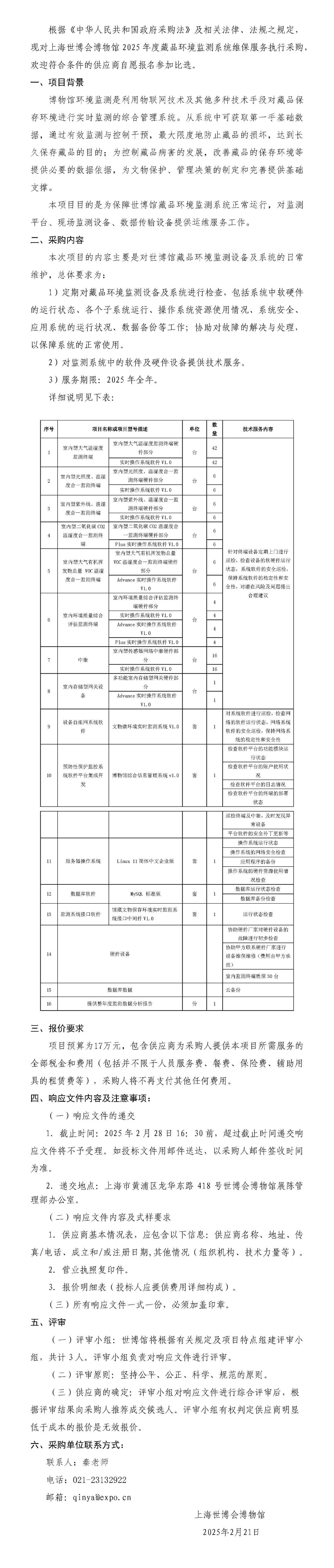 世博会博物馆2025年度藏品环境监测系统维保服务采购公告