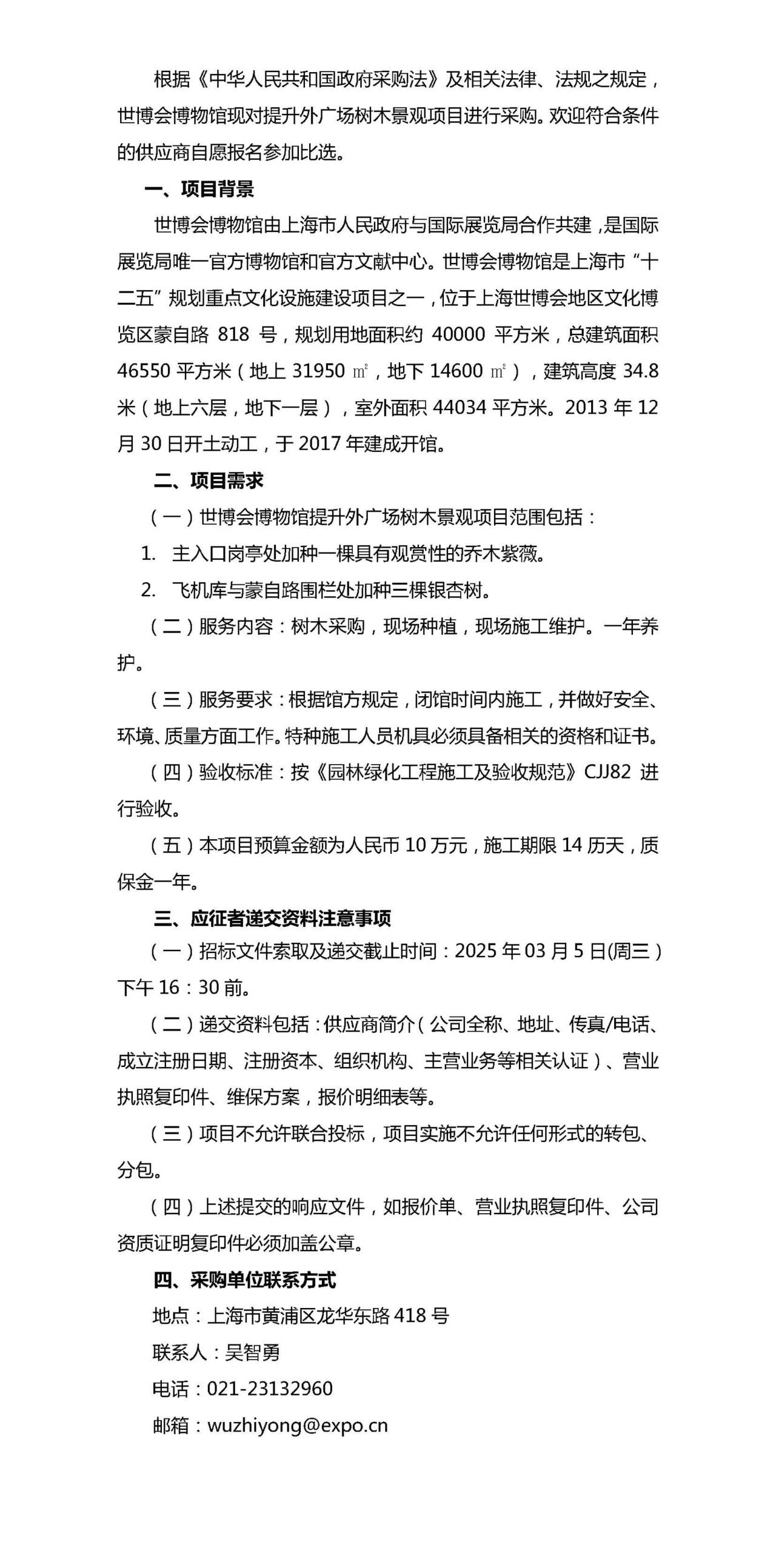世博会博物馆外广场树木景观提升项目招标公告