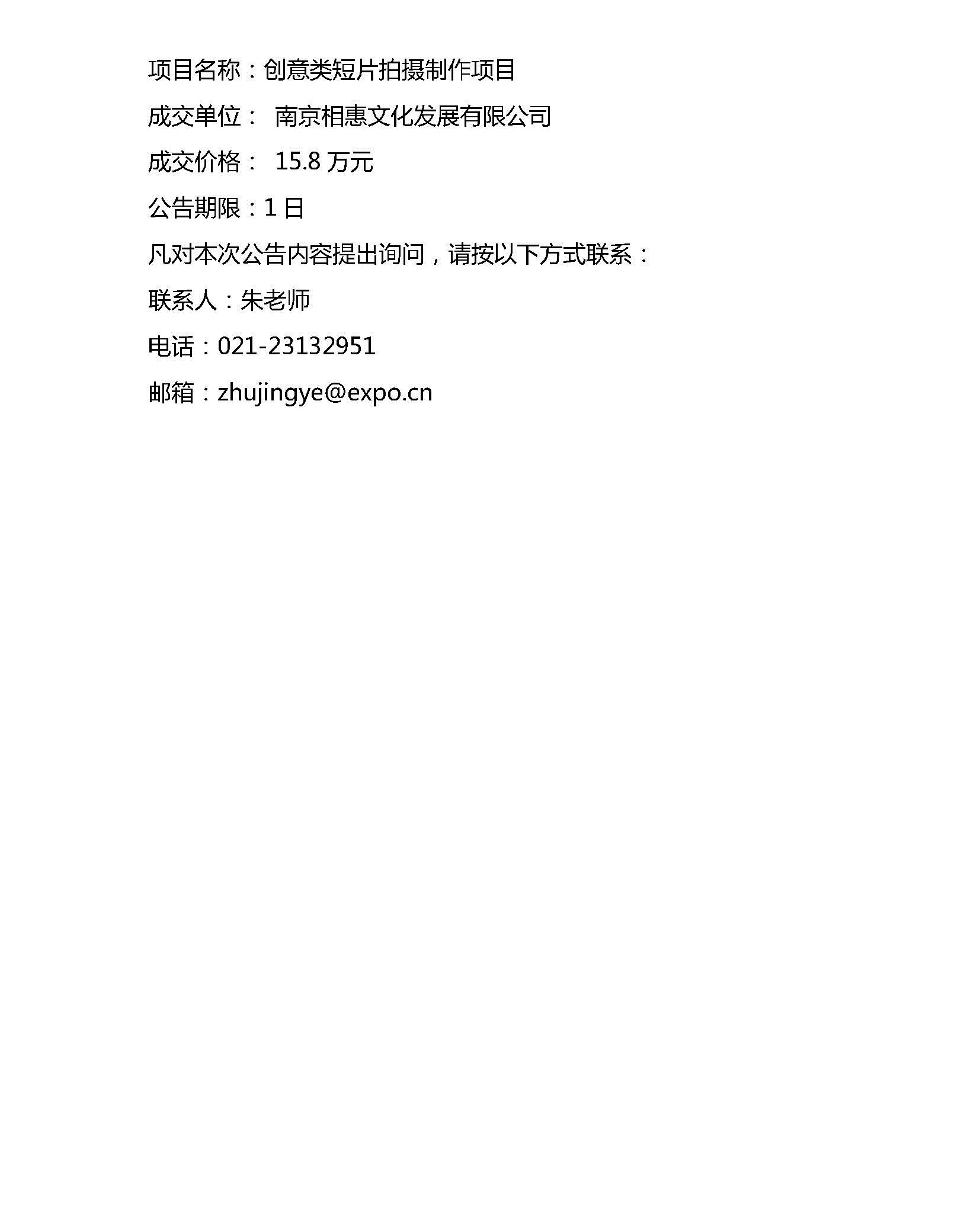 世博会博物馆创意类短片拍摄制作项目采购结果公告