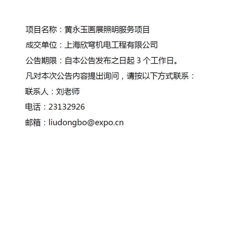 黄永玉画展照明服务项目中标公告