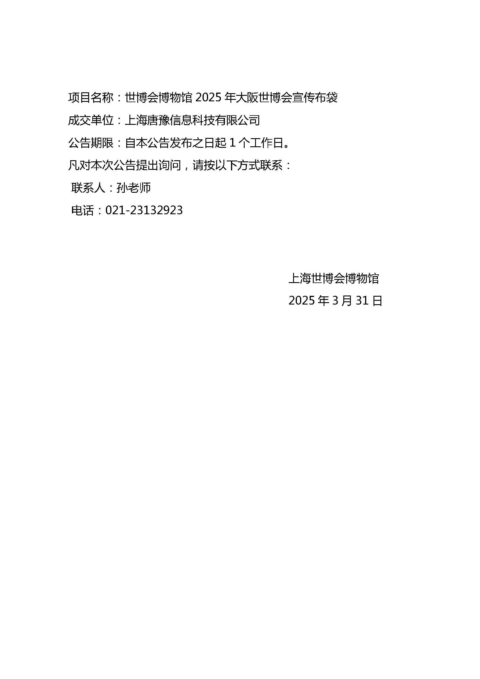 世博会博物馆2025年大阪世博会宣传布袋中标公告
