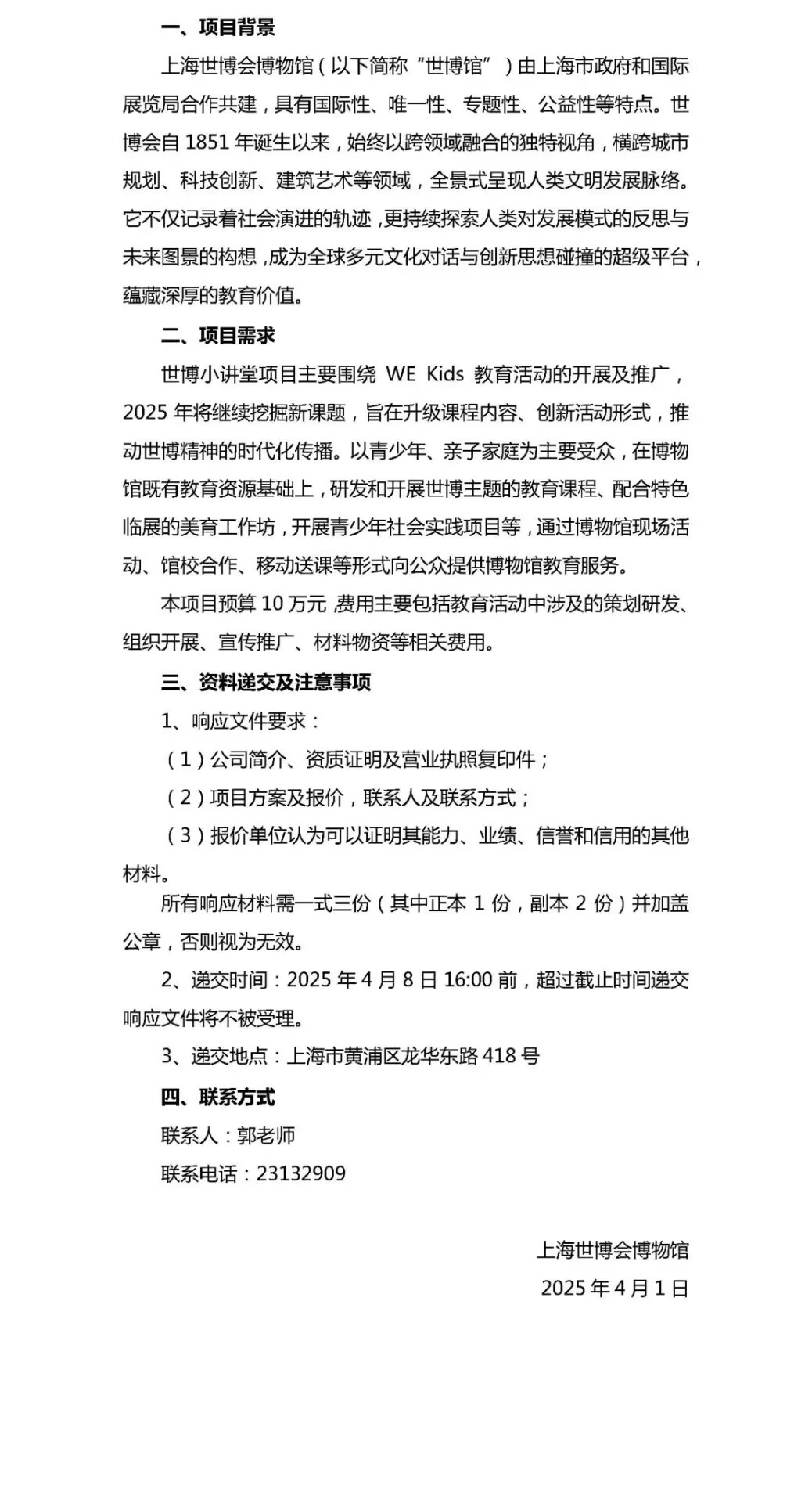 2025年世博会博物馆"世博小讲堂"项目采购公告