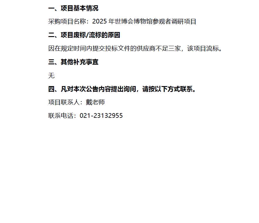 2025年世博会博物馆参观者调研项目流标公告