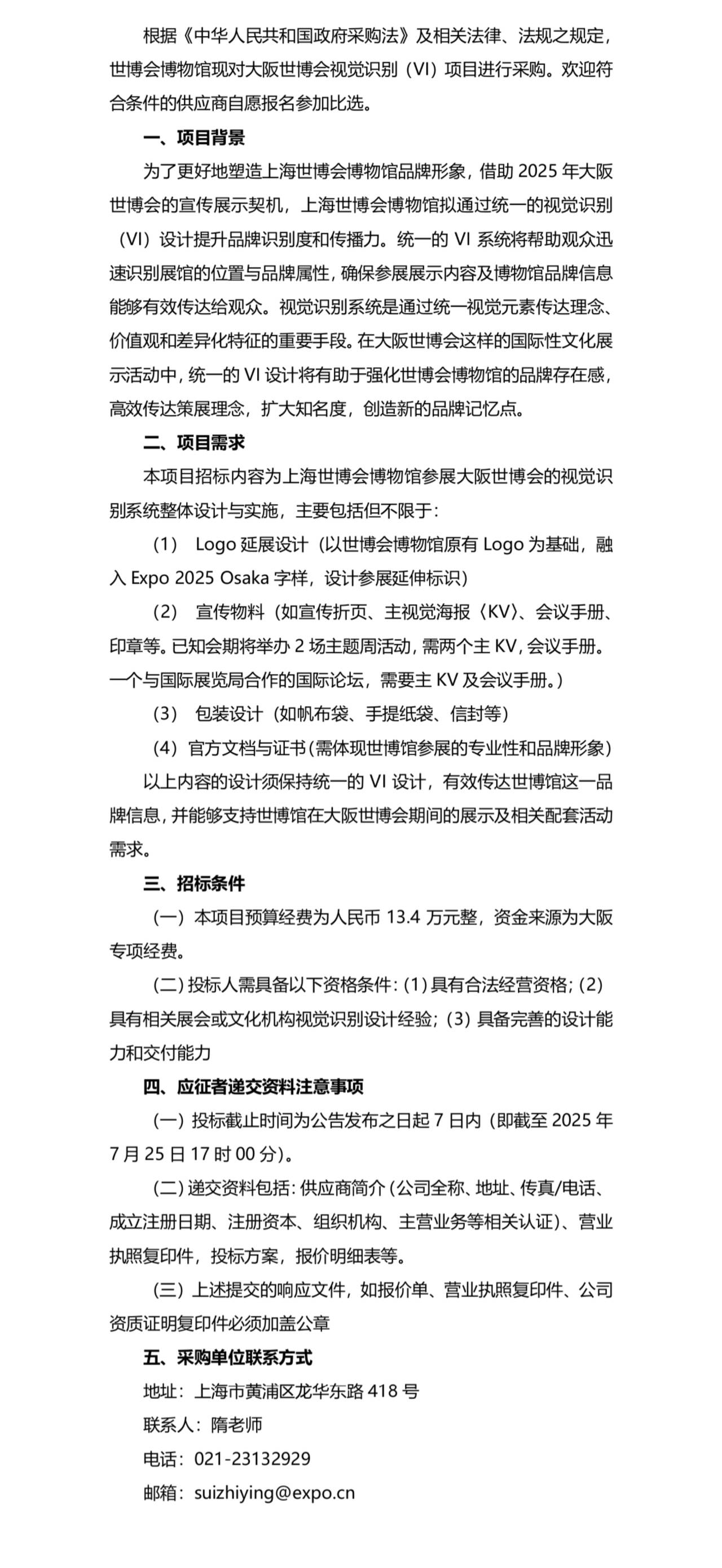 世博会博物馆大阪世博会视觉识别(VI)项目招标公告