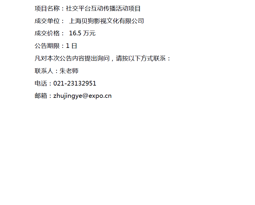 世博会博物馆社交平台互动传播活动项目采购结果公告