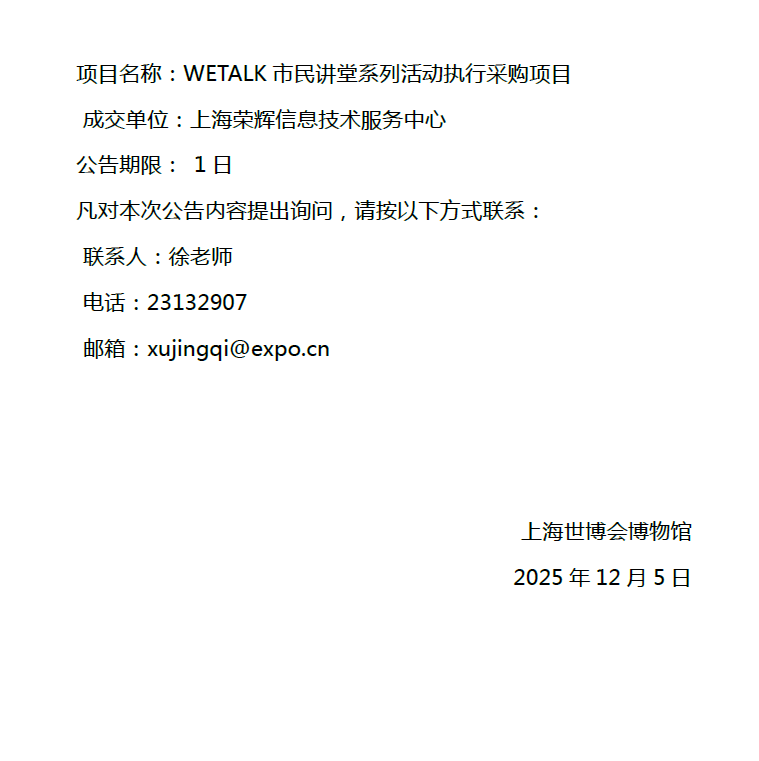 WETALK市民讲堂系列活动执行采购项目结果公告