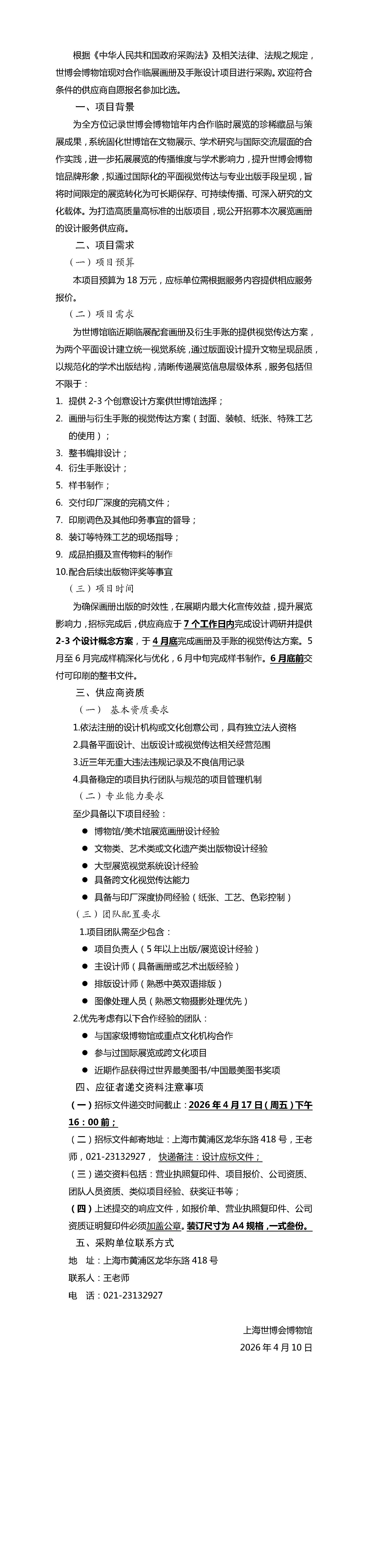 世博馆合作临展画册及手账设计项目招标公告