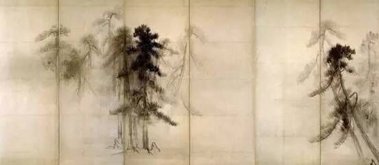钱谷真美:《见返美人图》是属于江户时代(17世纪)的浮世绘,主要描绘回眸美人。在日本这样的浮世绘比较受欢迎,但实际上日本人最喜欢的还是这幅《松林图屏风》,安土桃山时代(16世纪),是一位叫长谷川等伯的画家在公元1600年左右画的,它看起来有一种远近的透视感,也算人生有远有近、有起有落的一种表现。