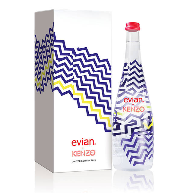 法国知名矿泉水品牌evian和法国时装品牌Kenzo合作设计了2015年依云限量版水瓶。