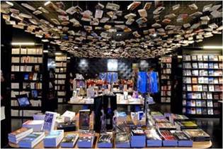 位于意大利罗马的旦特书店,建筑极具当代艺术风格。书店内拱形的天花板、长长的书架、雪白的装饰,犹如一个太空舱。而读者、游客到此,面对摆满图书、DVD、CD的书架,犹如参加一个商业文化展览会。书店主营绘画等各种艺术类图书,藏有的优秀作品多是世界各地名家的上乘之作,普通书店难以比拟,每年都能吸引数万读者、游客到此参观、购书。