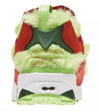这双鞋的设计灵感来源于电影《圣诞怪杰》,其中一心想要偷走圣诞夜的格林奇为大家留下了深刻的印象,就像这双长着绿毛的Reebok。