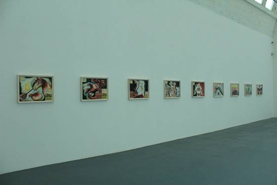 在本次展览中,克莱门特还带来了他在印度创作的四件雕塑/装置作品。其中《Self-portraitWith Five Senses》是以自我为形象的雕塑。而在水彩的创作上,他常在手工纸上创作没有任何雷同的水彩画,他以透明的水彩涂层或晕染作为意象的背景,进而完善其主题。克莱门特衷于游牧,他把游牧生活融入艺术创作,正如他在北京新近创作的水墨画系列,赤裸裸的自画像无处不在的跃然纸上,脑袋被漫画式地画成奇形怪状:秃顶,一双大眼目不转睛,或对视,或像双胞胎式的分离,或独自一人,或像佛教千手观音的形式,等等。