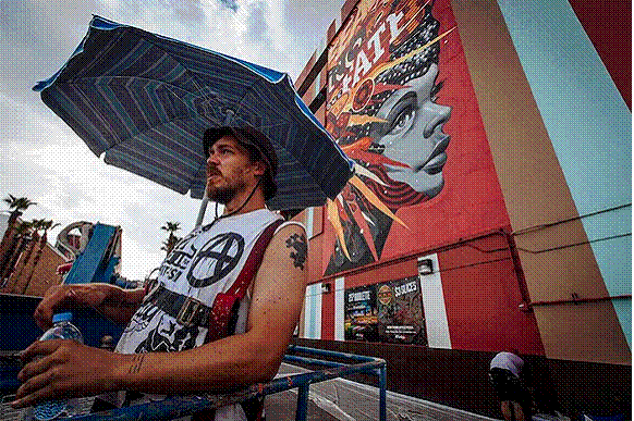 法国传奇艺术家Fafi的作品中一如既往地包含了由她创作的人物Fafinette,她是今年参加本次艺术节的3位女性艺术家之一,壁画中强势的女性形象完美地贴合了无所畏惧的赌城精神。