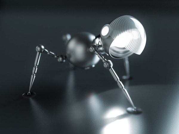 乌克兰工业设计师Vladimir Panchenko设计的概念吸盘机器人台灯仿佛一只可爱的昆虫,四条腿非常灵活,可以任意转动、弯曲,脚尖则装有吸盘,可以吸附在任何光滑表面。