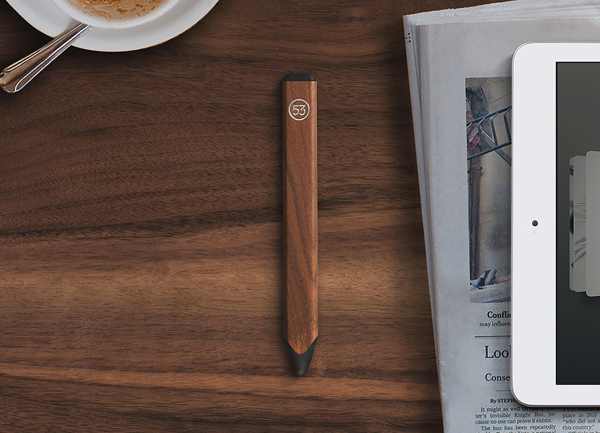 这款笔的名字也很独特,设计师 Audrey Louchart 将其命名为 FiftyThree,中文名也就是 53。它的外形上有一点类似我们高中时用的涂卡笔,呈篇平的长方形状,材质上选用最有质感的木质,有淡雅黄、典雅黑和杏仁黄三种颜色可供选择。有了 53,你可以像在纸上写字一样,尽情地在平板电脑上书写,不用再担心冬天戴着手套不方便用平板等问题。