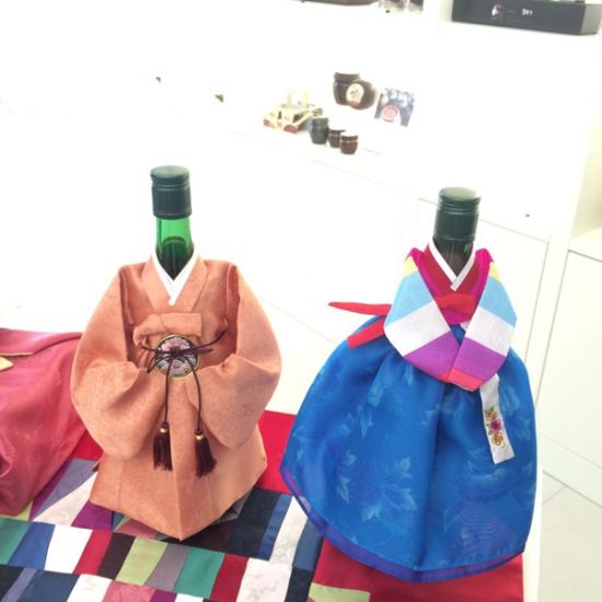 韩国馆外卖韩国海苔片和辣酱,买来试了,非常好吃。他们的纪念品商店做得非常好,从手工艺人制作的茶具到丝巾、扇子,穿着传统韩国服饰的酒瓶子,还有用特殊环保材料做的环保袋,每一样都很想真的买回去。